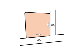 - 西側(公道)幅 約5.4m 間口 約14.40m
